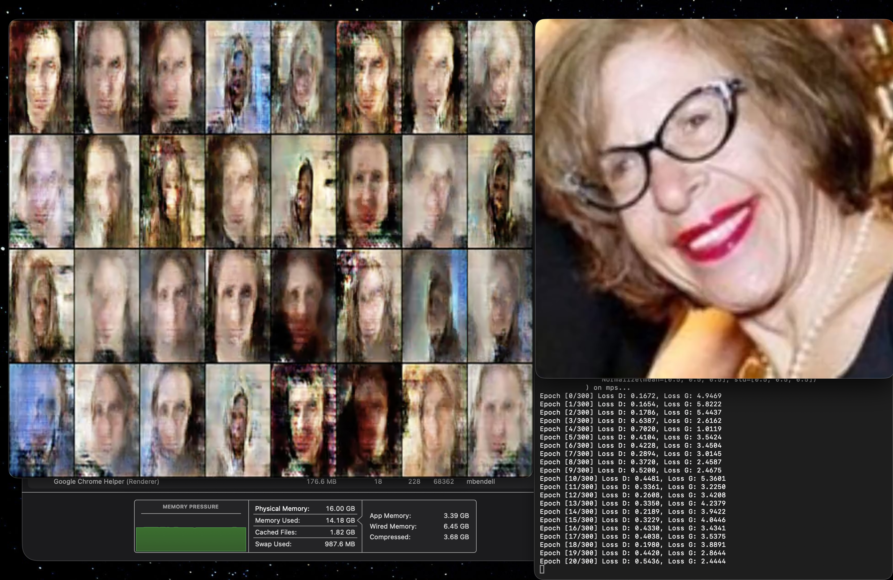"We Live a Little While" is a solar-powered computer that uses self-defeating architecture to generate a portrait of the artist - crawling the internet for images of the artist's face while amplifying, but ultimately diluting, a core dataset over time with likely matches.